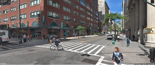 Additionally, even though StreetLearn’s panoramas cover the same area of Manhattan as Touchdown, they are not adequate for research covering the tasks defined in Touchdown, because those tasks require the exact panoramas that were used during the Touchdown annotation process. For example, in Touchdown tasks, the language instructions refer to transient objects such as cars, bicycles, and couches. A Street View panorama from a different time period may not contain these objects, so the instructions are not stable across time periods.