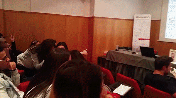 Our model predicts the depth map (right; brighter=closer to the camera) from a regular video (left), where both the people in the scene and the camera are freely moving.