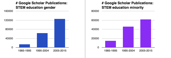 - The number of publications in Google Scholar on STEM education that focus on gender issues or minority students has steadily increased over the last several years.